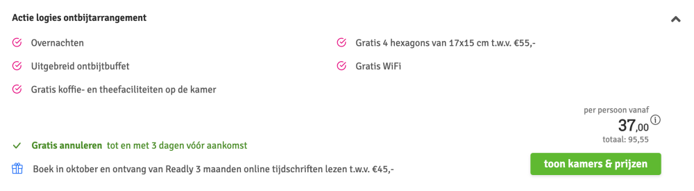 Disclaimer: deze prijs is excl. €14,95 boekingskosten per boeking.