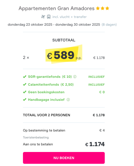 Gran CanariaKlaar voor een onvergetelijke vakantie op het Spaanse Gran Canaria? Bij Appartementen Gran Amadores zullen jullie een geweldige tijd beleven. Strandliefhebbers hoeven slechts een paar minuten te wandelen om te genieten van een middag aan zee. In het verblijf kunnen jullie genieten op het zonneterras, dobberen in één van de zwembaden of de wellness bezoeken. Hóe geweldig… ‘S Avonds is jullie verzorgde kamer de perfecte plek om te relaxen. Na een fijne nacht zijn jullie morgen weer helemaal klaar voor een nieuwe dag op het zonnige eiland!