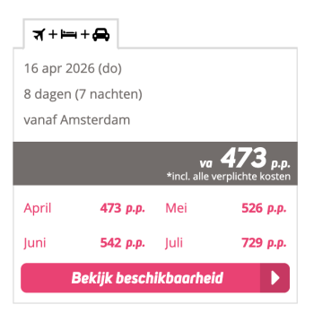 Dit Griekse eiland is een échte must visit. Geniet van de Griekse zon en laat je verrassen door wat dit eiland allemaal voor jullie in petto heeft. Bezoek de mooie stranden, ontdek de gezellige dorpjes en proef de lokale keuken. Of jullie nu willen struinen door het gezellige Corfu-Stad of languit willen liggen op Issos beach… Zowel jong als oud gaat een onvergetelijke vakantie tegemoet op dit prachtige eiland. Verblijf in een fijn complex of boek een welverdiende all inclusive vakantie. Wedden dat jullie niet meer terug naar huis willen?