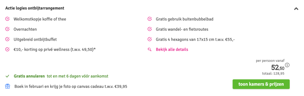 Disclaimer: deze prijs is excl. €14,95 boekingskosten per boeking.