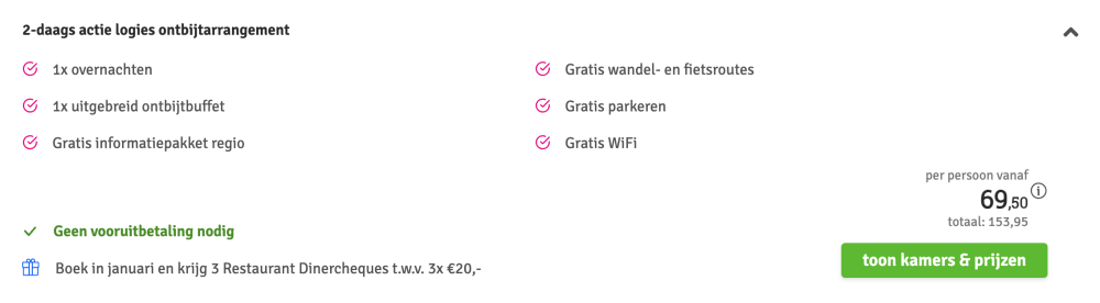 Disclaimer: deze prijs is excl. €14,95 boekingskosten per boeking.