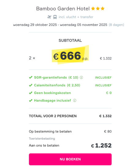 Vliegtickets + transfers + top verblijf