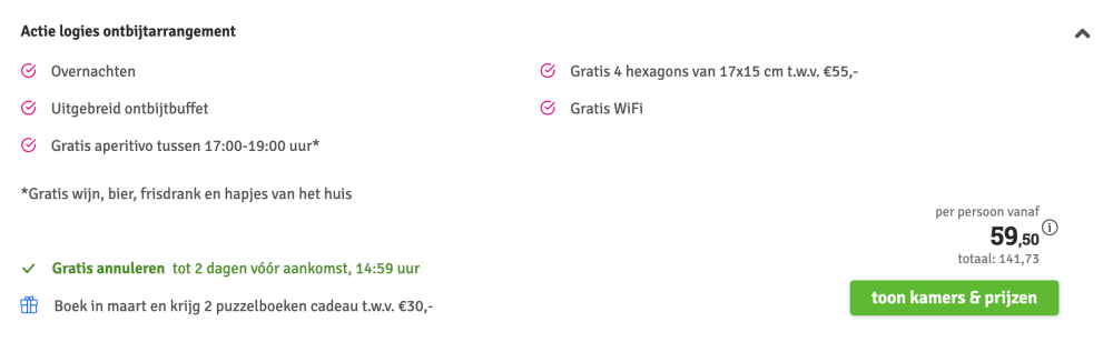 Disclaimer: deze prijs is excl. €14,95 boekingskosten per boeking.