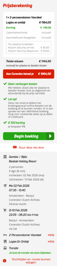 GambiaOp loopafstand van het strand én het gezellige centrum met restaurantjes ligt Baobab Holiday Resort. Dit geliefde complex heeft een unieke Afrikaanse bouwstijl en dankt zijn naam aan de grote Baobabbomen die veel in Gambia te vinden zijn. Baobab Holiday Resort heeft slechts 40 kamers, dus het is een kleinschalig verblijf aan de kust. Een dagje relaxen? Pak dan een goed boek en installeer jezelf aan het zwembad. Daar kun je direct ook een verkoelende duik nemen, want het is vaak lekker warm in Gambia. Let’s go!