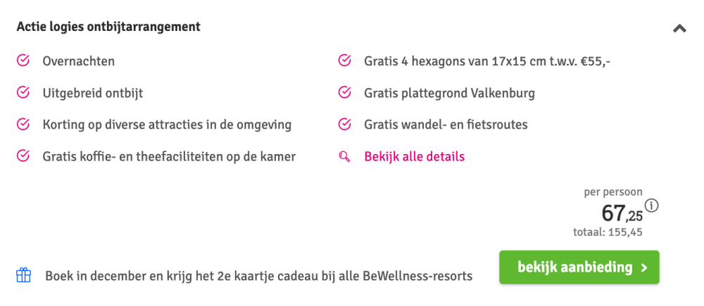 Disclaimer: deze prijs is excl. €14,95 boekingskosten per boeking.