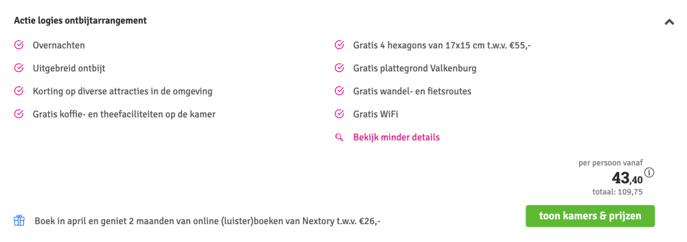 Disclaimer: deze prijs is excl. €14,95 boekingskosten per boeking.