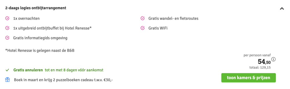Disclaimer: deze prijs is excl. €14,95 boekingskosten per boeking.