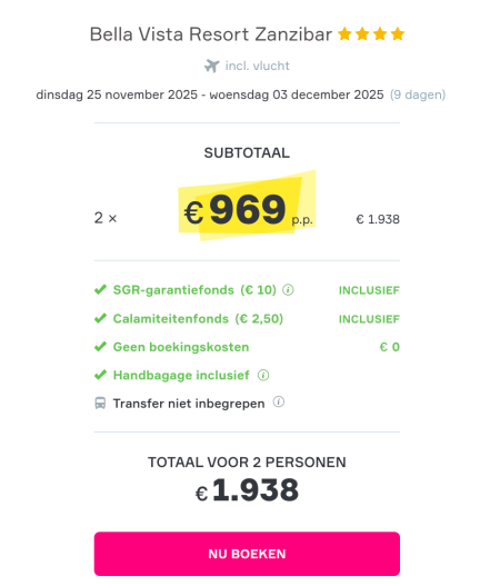 ZanzibarKlaar voor een tropische vakantie met witte stranden, een heldere zee en vriendelijke locals? Bella Vista Resort Zanzibar vinden jullie direct aan een prachtig strand, waar jullie 100% een heerlijke tijd gaan doorbrengen. Het resort beschikt o.a. over kamers met uitzicht op zee, verschillende zwembaden, een zonneterras met schaduwrijke plekjes en nog veel meer. Begin de dag met een frisse ochtendduik in de zee voordat jullie aanschuiven bij het uitgebreide ontbijt. Bezoeken jullie vandaag het historische Stone Town of gaan jullie gezellig een dagje kitesurfen in Paje? Het kan hier allemaal.