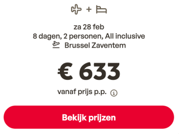 De boekingskosten zijn bij de prijs inbegrepen.