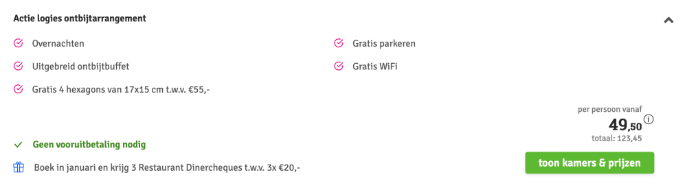 Disclaimer: deze prijs is excl. €14,95 boekingskosten per boeking.