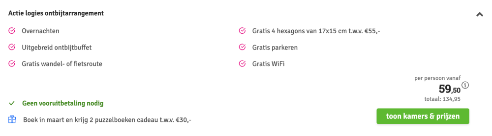 Disclaimer: deze prijs is excl. €14,95 boekingskosten per boeking.
