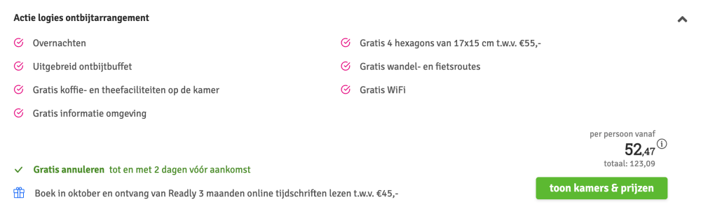 Disclaimer: deze prijs is excl. €14,95 boekingskosten per boeking.
