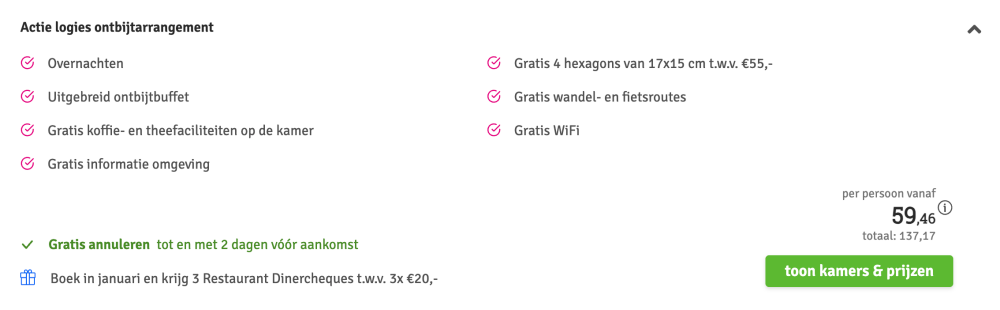 Disclaimer: deze prijs is excl. €14,95 boekingskosten per boeking.
