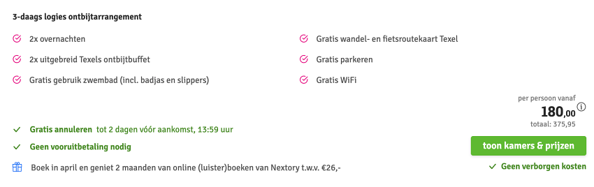 Disclaimer: deze prijs is excl. €14,95 boekingskosten per boeking.