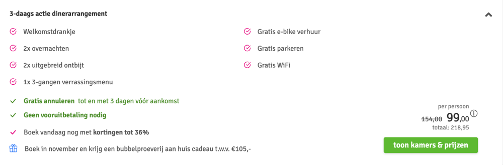 Disclaimer: deze prijs is excl. €14,95 boekingskosten per boeking.