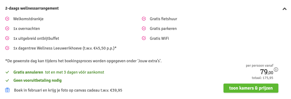 Disclaimer: deze prijs is excl. €14,95 boekingskosten per boeking.
