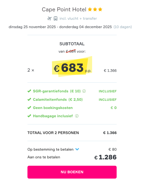 GambiaDit kleinschalige hotel in Gambia is de perfecte uitvalbasis voor de ideale strandvakantie. Wanneer je aankomt in het hotel, staat het personeel direct voor jullie klaar. Verwacht geen ultra luxe, maar een comfortabel hotel vlak bij het strand van Cape Point. Hier vinden jullie ligbedjes waar jullie heerlijk kunnen relaxen! Het hotel beschikt over een eigen restaurant, een gezellige poolbar, verschillende sportfaciliteiten en leuk entertainment. Toe aan wat verkoeling? Plons dan in het zwembad en geniet van deze vakantie vol zon, zee en rust.
