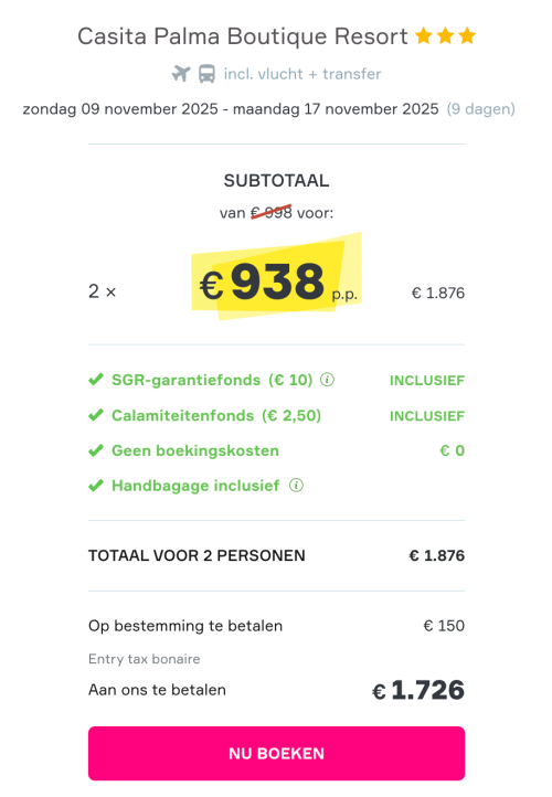 Jullie hoeven geen boekingskosten te betalen.