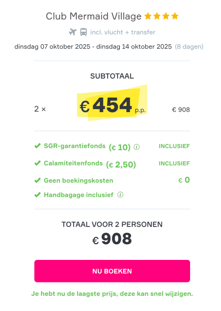 Jullie hoeven geen boekingskosten te betalen.