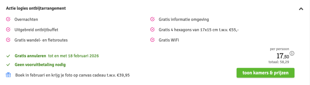 Disclaimer: deze prijs is excl. €14,95 boekingskosten per boeking.