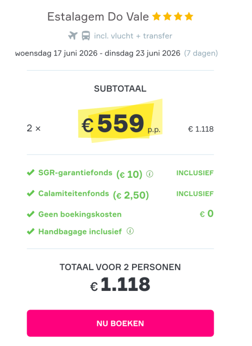 Jullie hoeven geen boekingskosten te betalen.