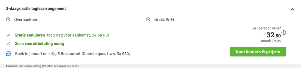 Disclaimer: deze prijs is excl. €14,95 boekingskosten per boeking.