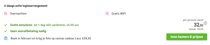 Disclaimer: deze prijs is excl. €14,95 boekingskosten per boeking.