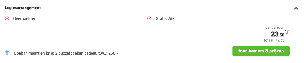 Disclaimer: deze prijs is excl. €14,95 boekingskosten per boeking.