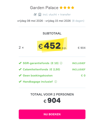 Jullie hoeven geen boekingskosten te betalen.