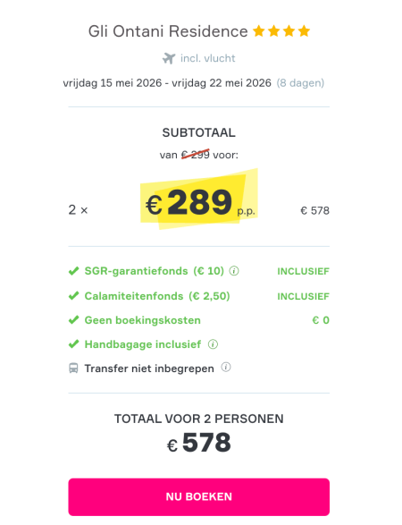 Jullie hoeven geen boekingskosten te betalen.