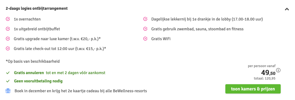 Disclaimer: deze prijs is excl. €14,95 boekingskosten per boeking.