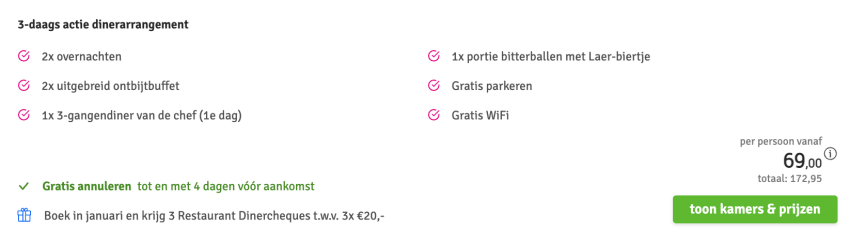 Disclaimer: deze prijs is excl. €14,95 boekingskosten per boeking.