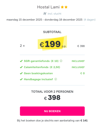 Jullie hoeven geen boekingskosten te betalen.