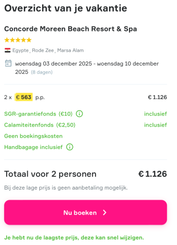 EgypteWow! Dit 5-sterren hotel is echt een paradijs op aarde. Gelegen in Marsa Alam, Egypte, heeft dit hotel alles in huis voor een uitstekende vakantie. Het start meteen goed… Jullie verblijven namelijk direct aan het zandstrand met een adults only gedeelte. Iedereen kan hier de rust opzoeken ver van de grote steden, maar wel lekker dicht bij het strand. Aan de kinderen is ook gedacht, zij vermaken zich in de kinderbaden, miniclub en speeltuin. Dankzij de all inclusive formule vermaken jullie je in Hotel Concorde Moreen Beach Resort en Spa zonder zorgen. Er valt nog zoveel te vertellen! Jullie moeten het hier écht een keer zelf meemaken.
