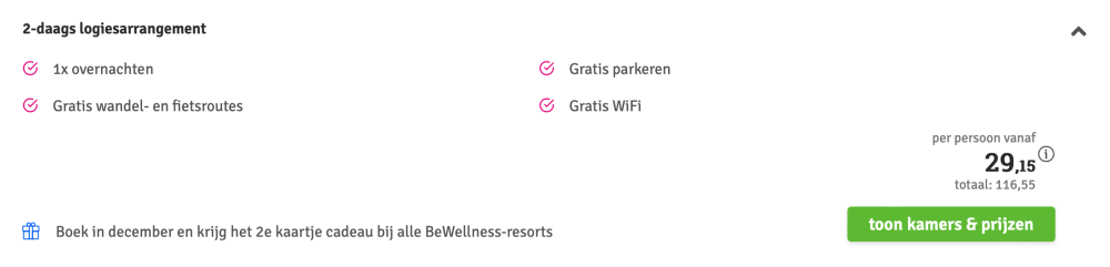 Disclaimer: deze prijs is excl. €14,95 boekingskosten per boeking.