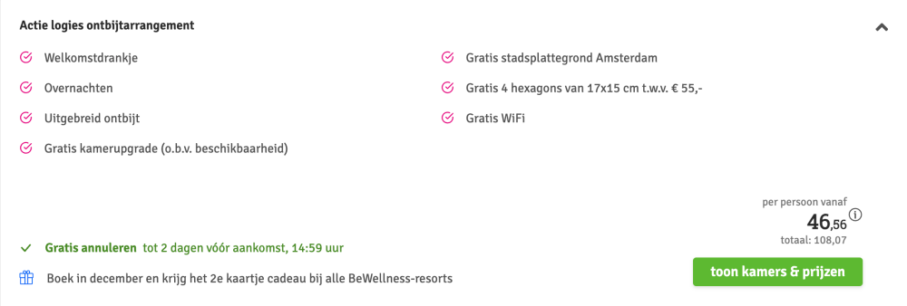 Disclaimer: deze prijs is excl. €14,95 boekingskosten per boeking.