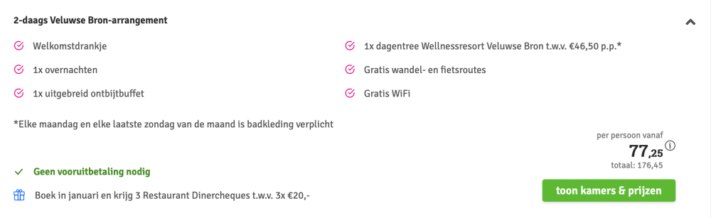 Disclaimer: deze prijs is excl. €14,95 boekingskosten per boeking.