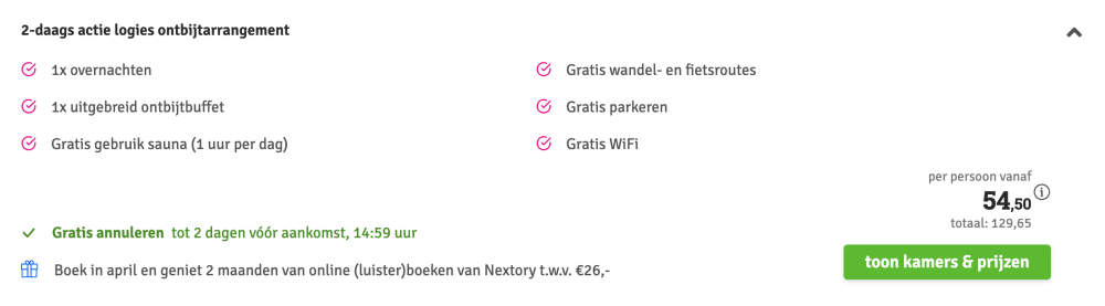 Disclaimer: deze prijs is excl. €14,95 boekingskosten per boeking.