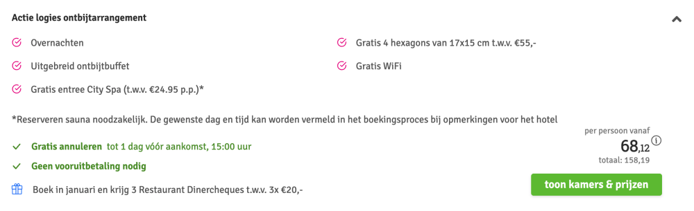 Disclaimer: deze prijs is excl. €14,95 boekingskosten per boeking.