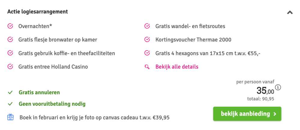 Disclaimer: deze prijs is excl. €14,95 boekingskosten per boeking.