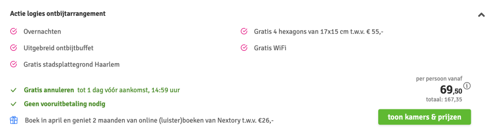 Deze prijs is excl. €14,95 boekingskosten per boeking.