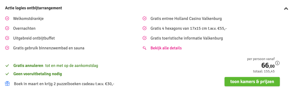 Disclaimer: deze prijs is excl. €14,95 boekingskosten per boeking.