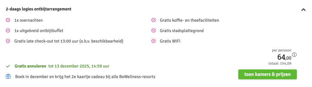 Disclaimer: deze prijs is excl. €14,95 boekingskosten per boeking.