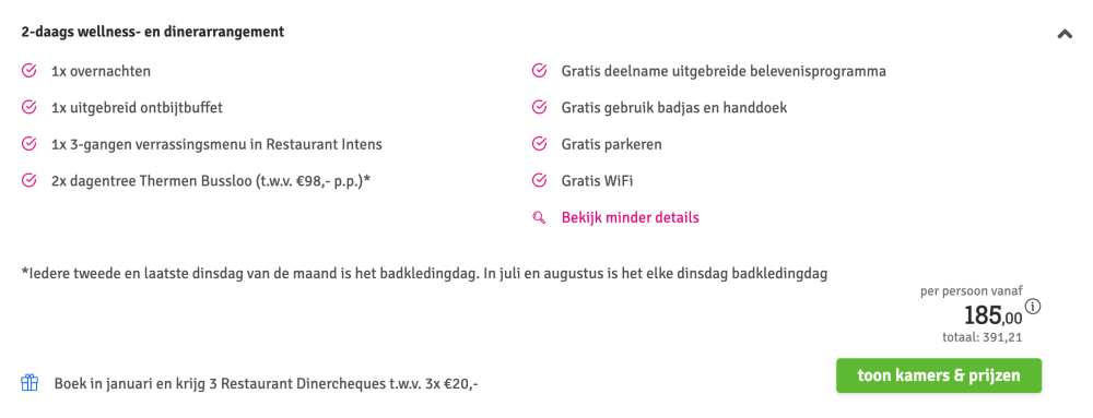 Disclaimer: deze prijs is excl. €14,95 boekingskosten per boeking.
