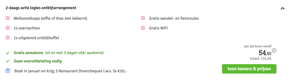 Disclaimer: deze prijs is excl. €14,95 boekingskosten per boeking.