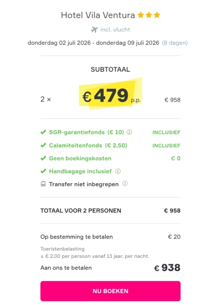 Jullie hoeven geen boekingskosten te betalen.
