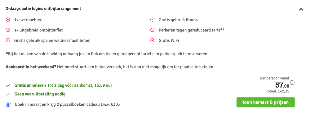 Disclaimer: deze prijs is excl. €14,95 boekingskosten per boeking.