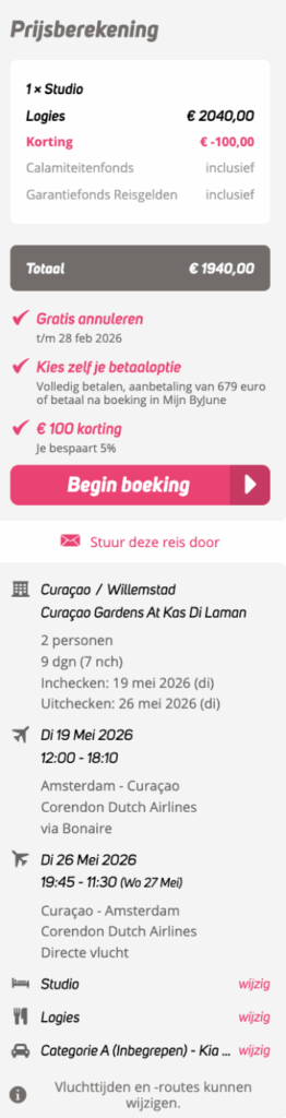 4* zonvakantie op Curaçao incl. huurauto
