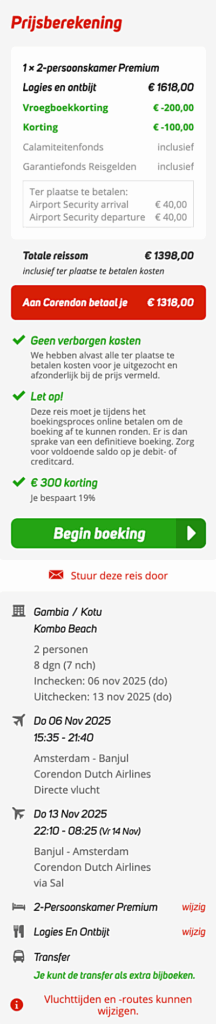 Gambia, een pareltje aan de westkust van Afrika. Gastvrijheid, natuurlijke schoonheid en culturele diversiteit komen hier samen voor een onvergetelijke reiservaring. Ontdek bijvoorbeeld de zonnige stranden aan de Atlantische Oceaan. Lig hier ontspannend onder de wuivende palmbomen. Of maak een boottocht over de prachtige rivier, de Gambia, en bewonder de mangrovebossen en kleurrijke vogels langs de oevers. Verken de leuke winkeltjes met exotische specerijen, ambachten en traditionele kleding in de hoofdstad Banjul en ontdek meer van de natuur door op safari te gaan met de aapjes, krokodillen en nijlpaarden. Kortom: ontdek waarom dit land vol warmte een populaire vakantiebestemming is!
