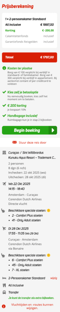 CuraçaoHet luxe Kunuku Aqua Resort op Curaçao is dé plek voor een volledig verzorgde vakantie op dit tropische eiland. De hele familie is hier welkom! Het resort bestaat uit luxe hotelkamers en ruime appartementen die van alle gemakken voorzien zijn. Altijd fijn! Ook wat faciliteiten betreft zal het jullie hier aan niets ontbreken… Maak gebruik van de 4 zwembaden, verschillende restaurants (waaronder een pizzeria & een sushi restaurant), bars en nog veel meer. Het resort heeft een rustige ligging, maar jullie kunnen gebruik maken van de shuttlebus als jullie naar het strand of naar het centrum van Willemstad willen. Perfect!